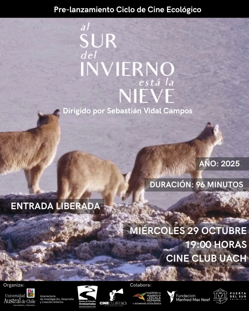 Con esta actividad, el CEAM-UACh, unidad dependiente de la Vicerrectoría de Investigación, Desarrollo y Creación Artística (VIDCA) retoma su tradicional Ciclo de Cine Ecológico después de una pausa desde la pandemia. Este ciclo es un espacio de encuentro que busca vincular el arte, la ciencia y la sociedad mediante el cine, promoviendo la reflexión crítica y la participación ciudadana en torno a temas ambientales.